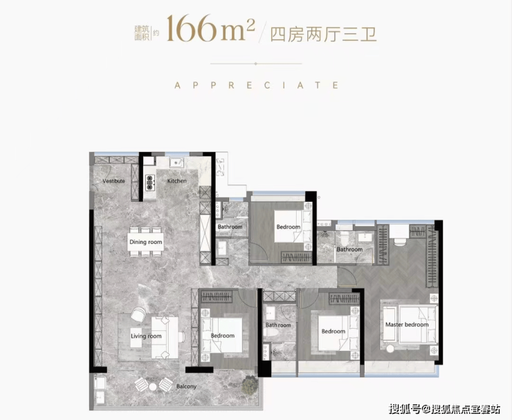 户型鉴赏(103-188平全南向四房,得房率高达126%)