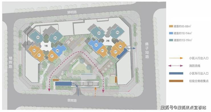 【产品户型】建筑面积约85-88m²三房两卫、建筑面积约110-114m²四房两卫、建筑面积约113-119㎡四房两卫
