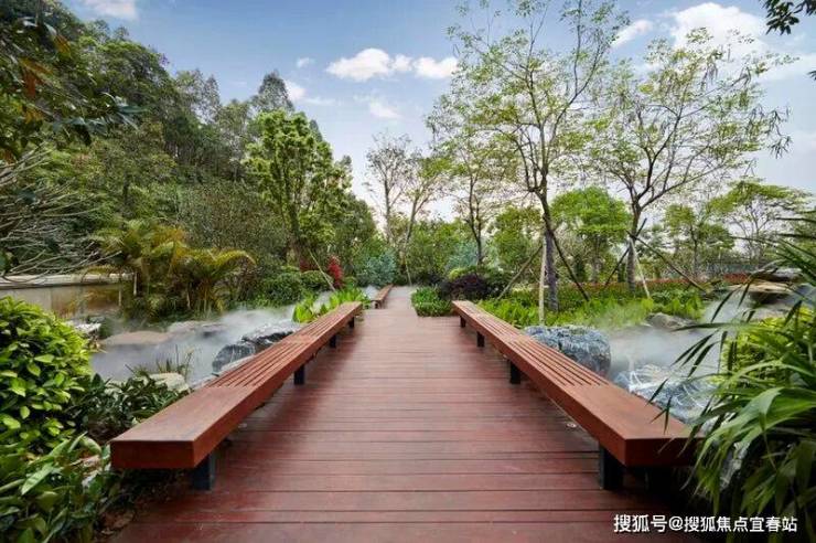 其承大国之院落,取云山之厚重,打造现代版履道坊——花溪谷,绿植山体环绕,重点打造瀑、潭、溪、涧、湖等不同形态的水景,配以桥、亭、阶、坡景成就一座院藏云山的大美园林。