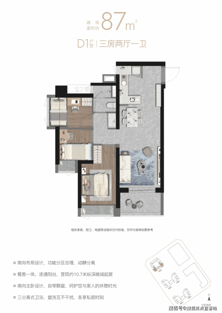 户型:67㎡两房、87-96㎡三房、117-125㎡四房,得房率82%,精装交付(配进口厨电+酒店式泳池)。