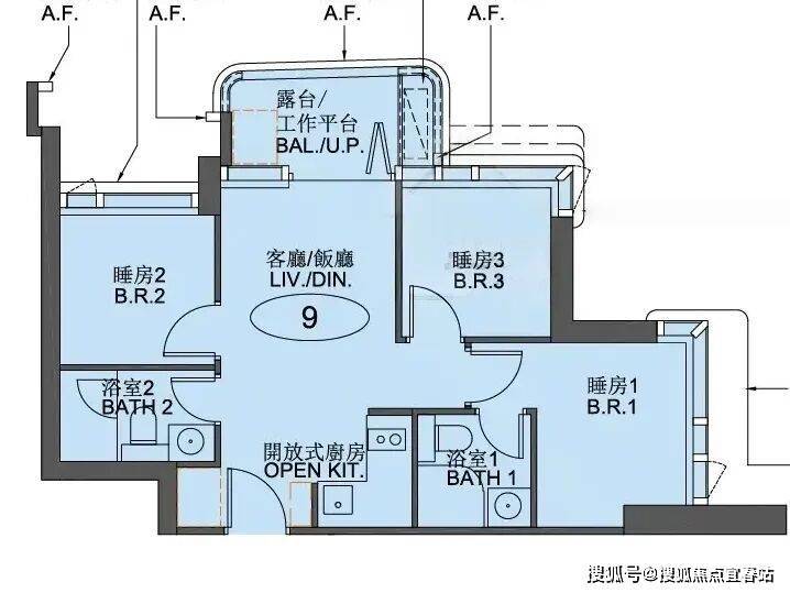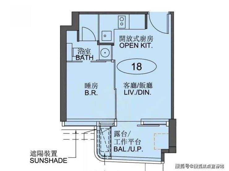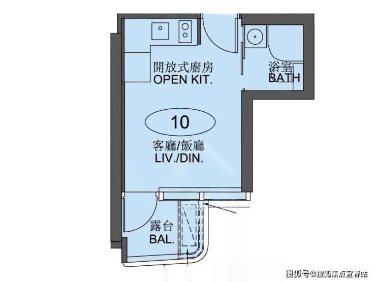 户型:开放式、1-3房