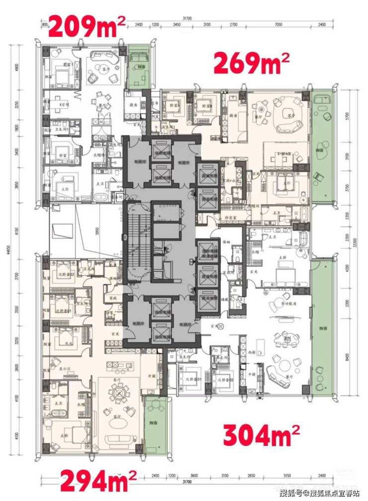 项目首推北区1栋、2栋,低区为约209平、294平、269平、304平,高区约370平、375平、403平,超高区500平、700平、1050平。