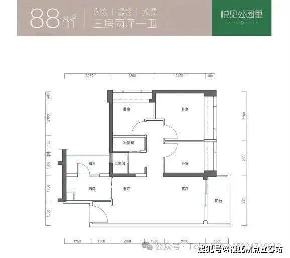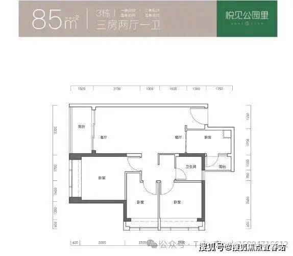 以建面约85-87平的3房2厅1卫为例,户型方正、动静分区,入户带玄关、卫生间3分离、双阳台、卧室带整面墙宽的大飘窗。双卧室+客厅三面采光,采光面宽达约8.8米,室内非常通透、明亮。更厉害的是,三个卧室之间没有承重墙,格局非常灵活,可在结婚、生子等不同的人生阶段,个性化定制不同的生活空间。