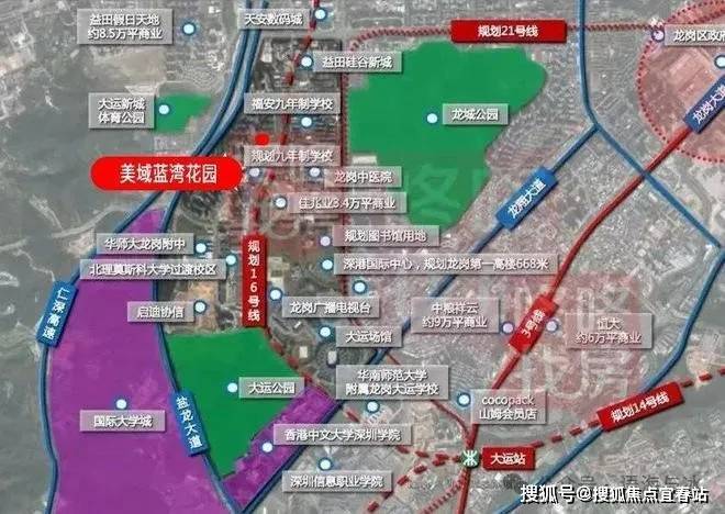 美域蓝湾项目紧邻地铁16号线龙城公园站,仅约1公里之遥,未来可便捷换乘至大运枢纽站,与14号线无缝衔接。这一交通枢纽优势,将极大缩短从大运新城至福田中心区的通勤时间,仅需半小时即可轻松抵达,让居住者享受高效便捷的都市生活,同时拉近了新城与市区的距离。