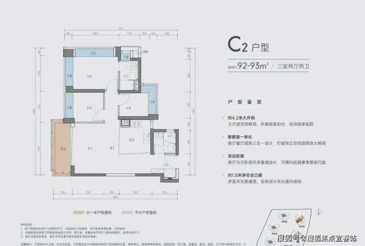 C-2户型 | 建面约92-93㎡三室两厅两卫