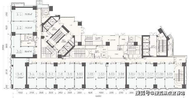 北庐多层商业:分布于2-5楼,建面区间约43-126㎡,层高约4.7m
