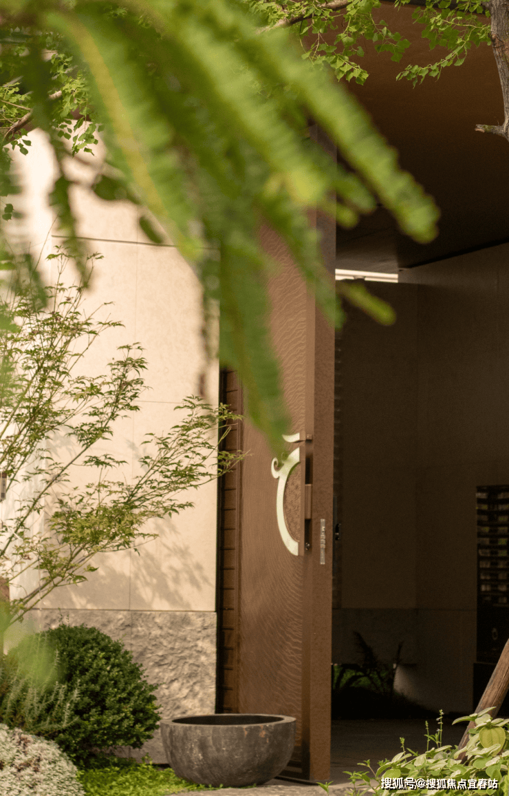 从带有水波纹肌理的入户大门开始,归家便充满东方礼序。室内,竖条窗隙引入天光绿意,一瓶疏枝便点染出满室禅意,让“留白”成为心灵休憩的空间。而水墙与黑松构成的“松风临水”之境,清脆水声与苍松静姿交织,成为洗涤心灵的日常风景。