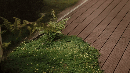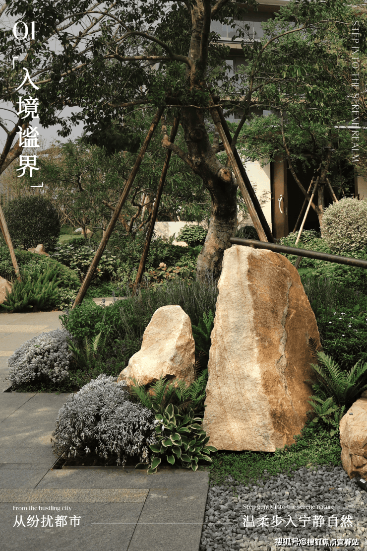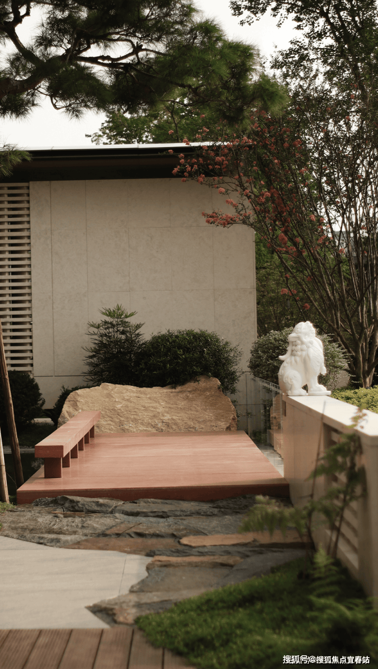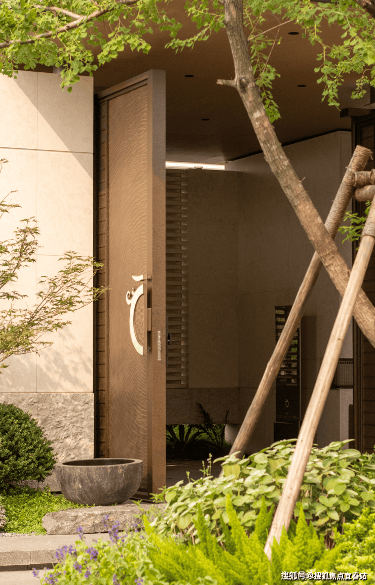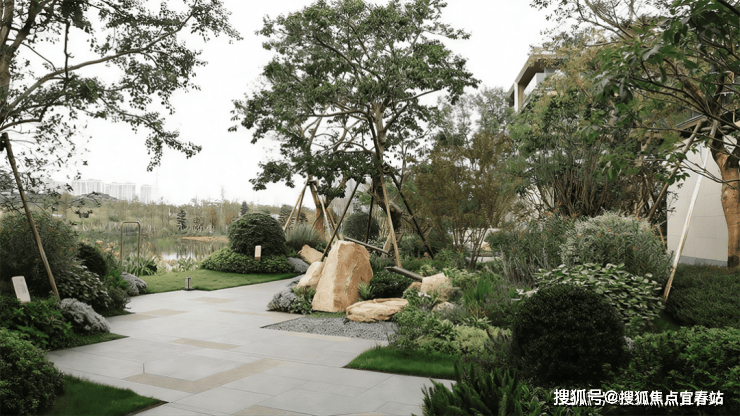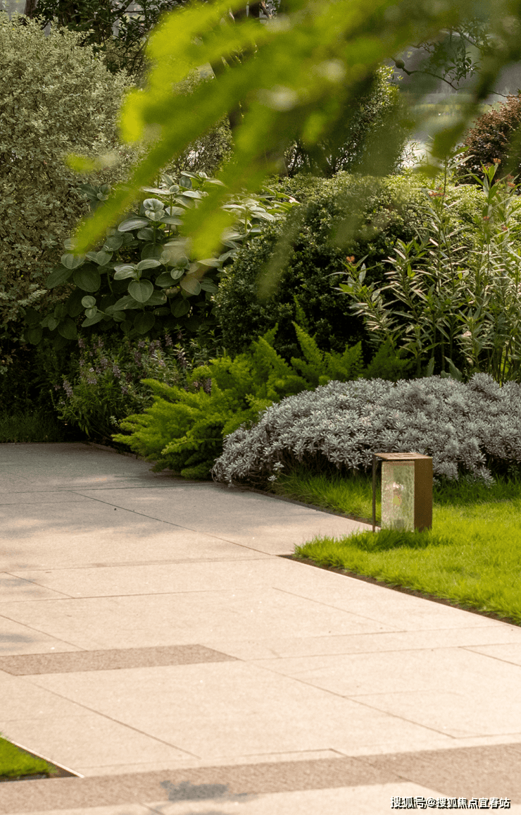 以蜿蜒的石板路为引,通过层层递进的花草、灌木与乔木,柔和地衔接城市与自然。远处的建筑轮廓不再是冰冷的边界,而是成为这幅“生活画卷”的远景,让归家之路成为一场心灵的舒缓之旅。这种 “边界消隐” 的设计,让您瞬间脱离外部喧嚣,步入一片专属的静谧绿洲。