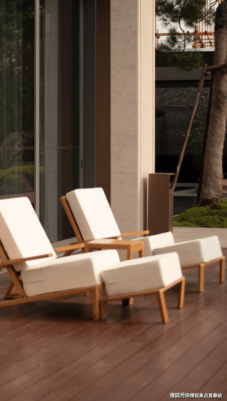在木质露台上,简约的躺椅背靠通透玻璃,让休憩成为一种沉浸式的自然体验。昼夜交替,温暖的庭院灯静静守护,为静谧夜晚增添无限温情。这里的一切设计,都只为营造一个能让您彻底放松、回归生活本真的安心之所。
