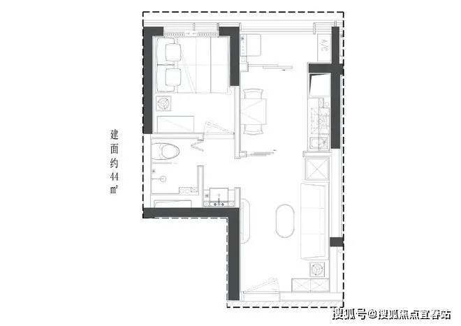 44㎡1房总价:280-300万单价6.3-6.8万
