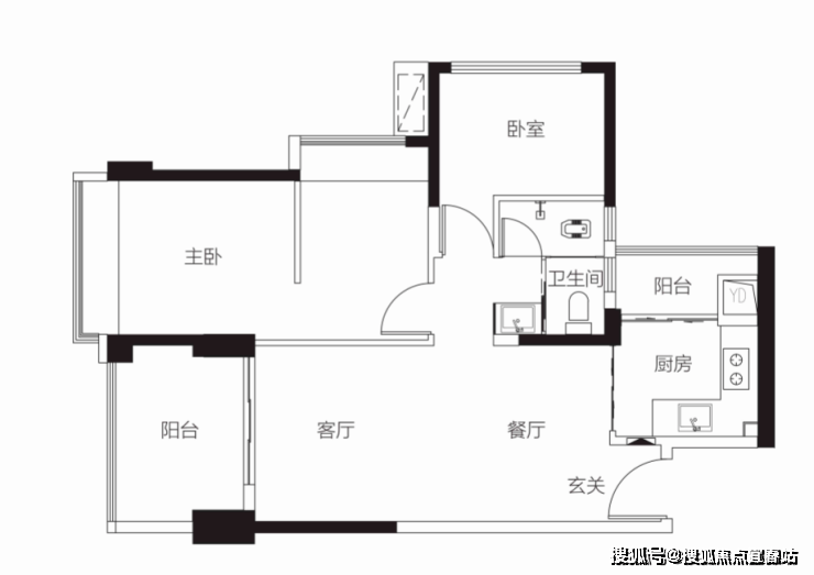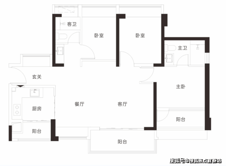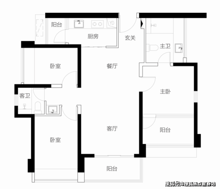 客厅朝西带阳台,2房朝西,1房朝南,1房朝北 单价区间:7.5-7.7万 总价区间:885万-910万