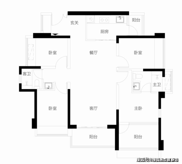 【115-118㎡4房2卫户型】