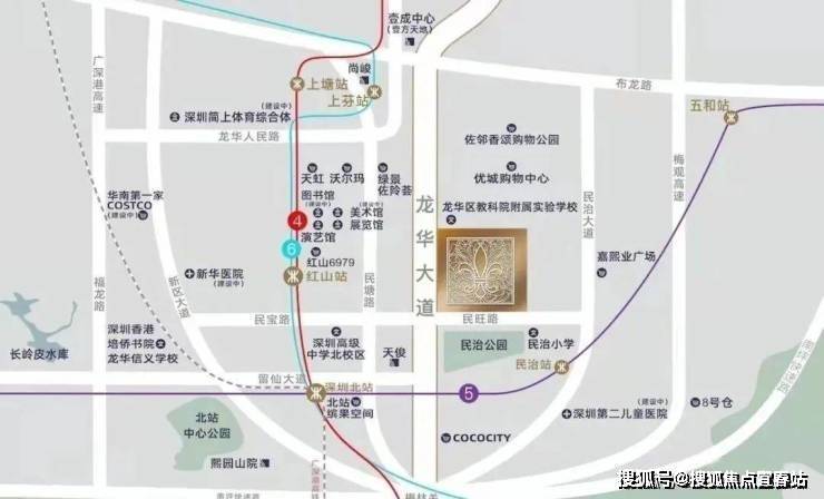 深圳北站高铁枢纽、地铁4/5/6号线已开通,22号线在建中,27号线规划中,已进入招标阶段,深大城际和深惠城际在建中,项目距离深大城际民治北站约900米,未来约20分钟到达机场,五地铁+二城际交汇环绕,五横六纵多维立体路网,无界城心繁华