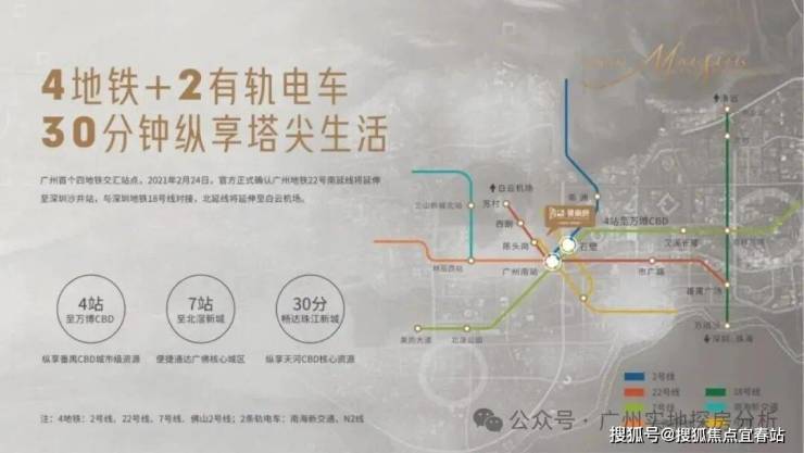 项目距离地铁2/7号线石壁站仅约300米,7号线1站到广州足球公园,3站到长隆欢乐世界,4站万博商圈。通过2号线、22号线、广佛环线、海珠湾隧道等多维交通,珠金琶、白鹅潭、海珠,全都能直达。