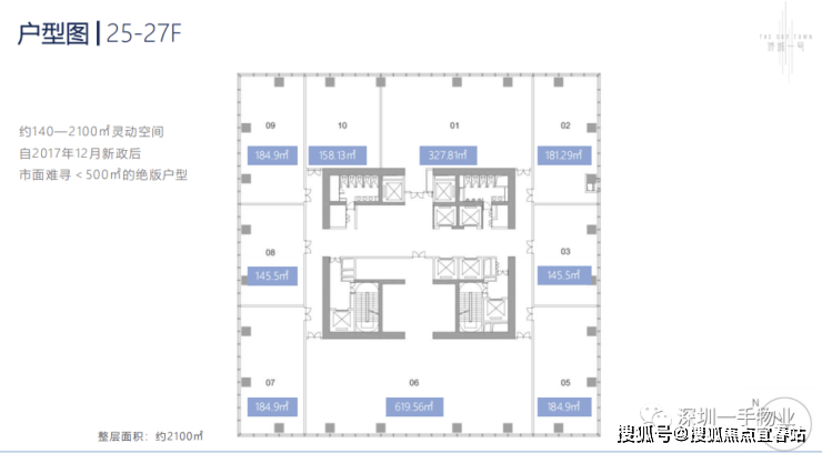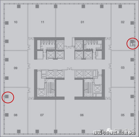 仅27层商务空间划分高中低三个电梯分区,分区细致