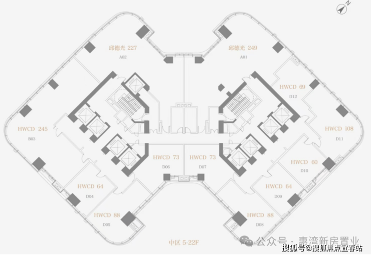 项目包含336间设计精美的住宅单元,以及规划周密的公共空间和下沉式商业。为了让建筑融入城市肌理,设计策略性地将塔楼旋转45度,旋转后的塔楼不仅规避了周边建筑的视线遮挡,使住宅单元均能获得270°环幕视野,将罗湖城市景观与香港山峦尽收眼底,更通过斜向切面与周边街道形成动态呼应,消解了超高层建筑对城市尺度的压迫感。