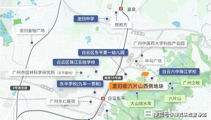 东侧为白云六中珠江学校(高中),南侧为广东实验中学,还有龙归中学、东平学校、永兴小学。其中东平学校(小学),与省实关系很好,未来有望纳入省实教育集团统一管理。地块西边规划一所36班九年制学校,远期还可以扩建为45班制。