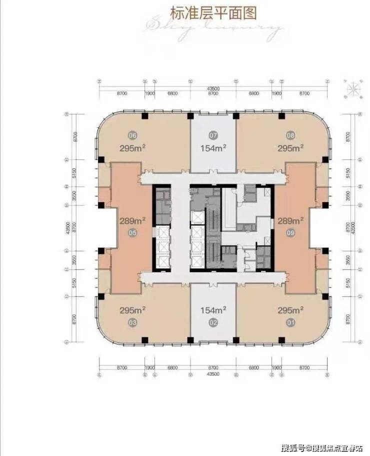 295平 2+2房/2+1房 东南西北朝向 1层4套,4个端头位