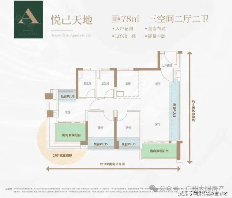约11米南向4开间面宽,100%的房间和客厅全朝南,让每位家庭成员畅享阳光和风景。
