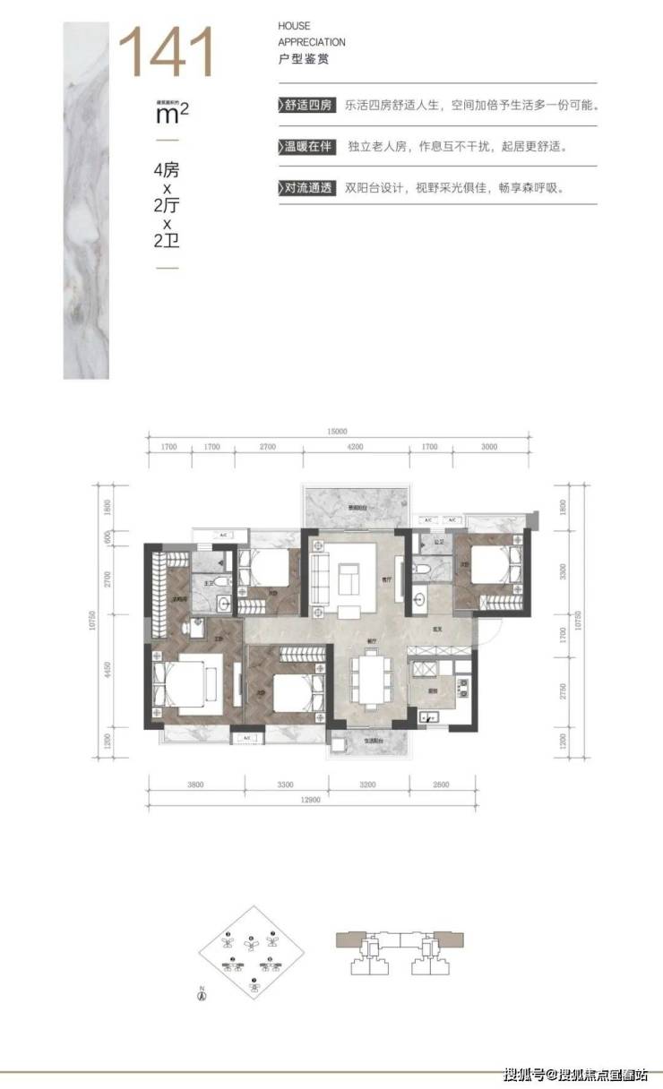 户型:建面约80-96㎡创享空间、建面约96-198㎡的天幕高层