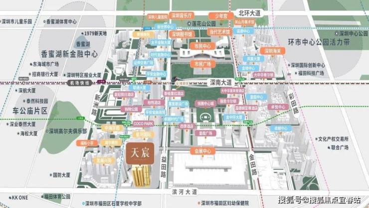 ◎ 资源:福田COCO PARK、平安金融中心等超148万㎡大型高端商业集聚;深圳音乐厅、会展中心、深圳市少年宫、莲花山公园等40余座市级资源汇聚