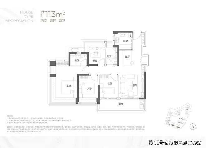 建面约113㎡4房2卫