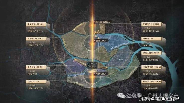 广州黄金中轴之上,千万级豪宅鼎立其间,呈现出“2+1"的豪宅分布格局。