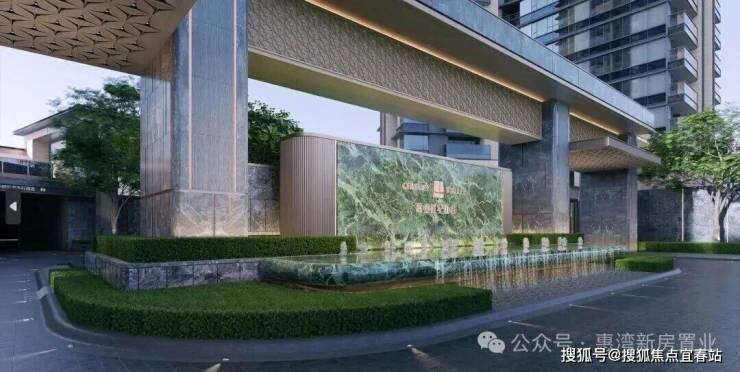①门仪:约70m宽奢阔主入口,绿奢石照壁、天然花岗岩门头