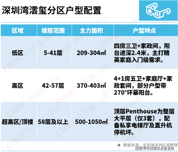 梯户比:非统一配置,低区4梯4户、中区4梯3户、高区及顶奢户型3梯1户。