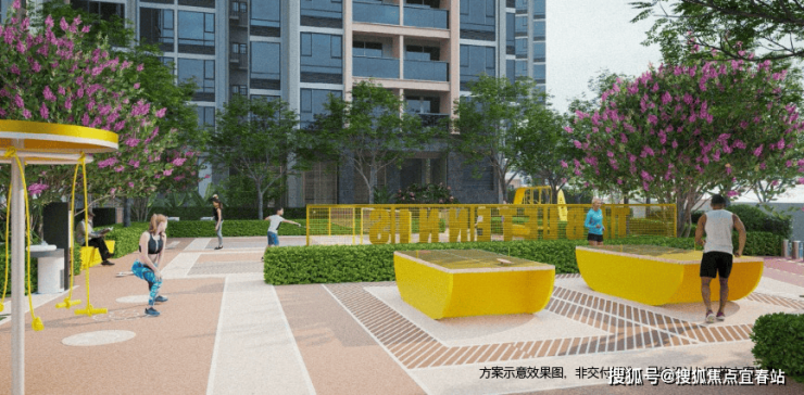 约1500平24小时运动聚落,设置羽毛球、乒乓球、儿童游乐园、成人健身器材等