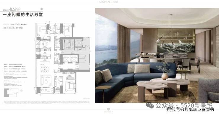 - 402m²(近似项目401/404m²户型):顶豪标杆,稀缺性突出
