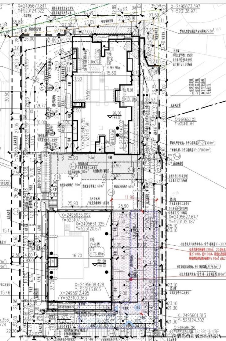 北地块:1栋17层办公楼,以及1栋住宅33层这栋住宅是含回迁房、保障房及公配设施(幼儿园、社区体育场地等)