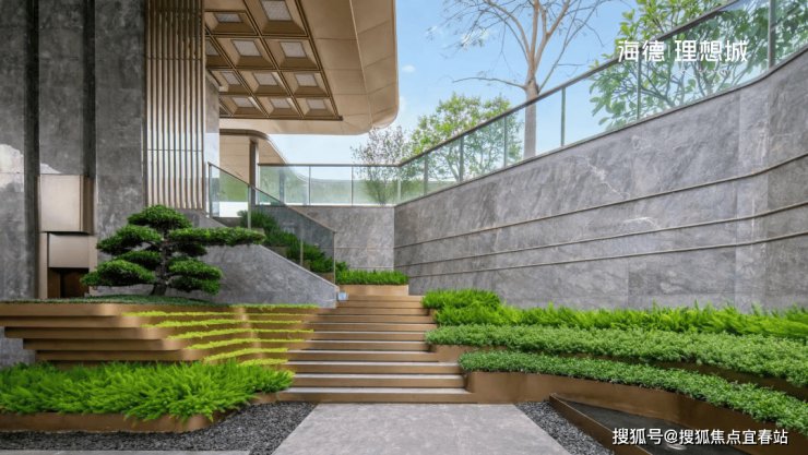 海德理想城的园林设计以“五重空间递进”为骨架,将传统府院的礼序感与现代极简的留白美学融合,形成沉浸式体验路径。
