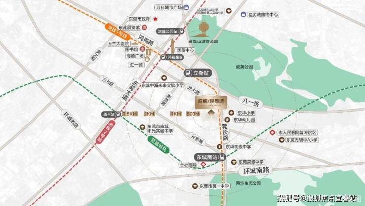 项目距离东莞地铁1号线立新站(在建)直线距离约500米,年底通车后1站直达鸿福路站;环城东路作为纵向主干道,连接南北区域,与八一路、莞长路等横向主干道形成“井”字形路网,构成了区域交通网络的核心框架;松山湖大道接驳莞深高速,50分钟直达深圳。