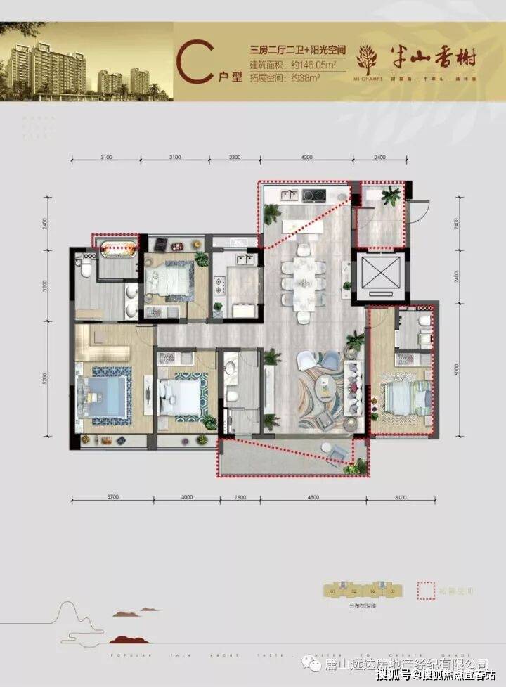 一期推出四种户型,分别为86.20㎡的二房二厅一卫A1户型、二房二厅一卫88.09㎡A2户型、85.18㎡二房二厅二卫A3户型、146.55㎡三房二厅二卫C户型。以现代极简主义打造,户户入户花园让绿意在家中蔓延,大面积采用外窗及大进深阳台让阳光清风入户无拘束。