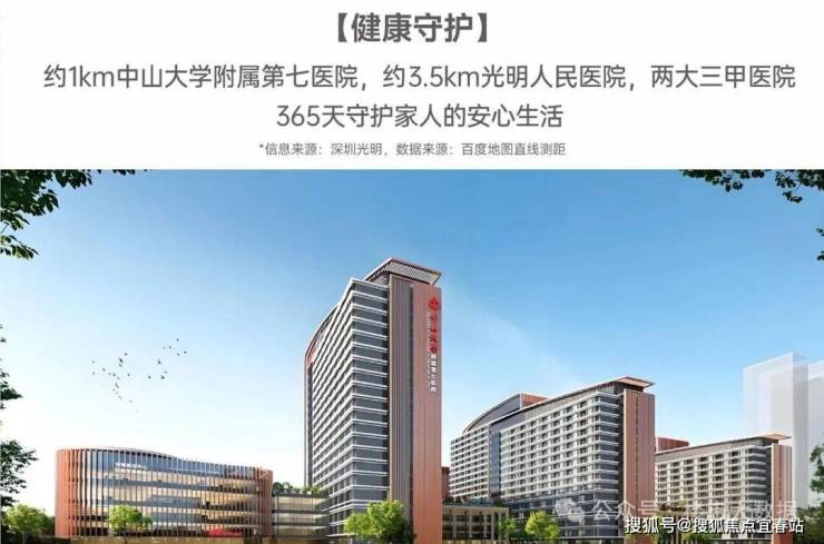 【健康守护】:约1km中山大学附属第七医院,约3.5km光明人民医院,两大三甲医院,先进医疗设备,著名医师团队,365天守护家人的安心生活。