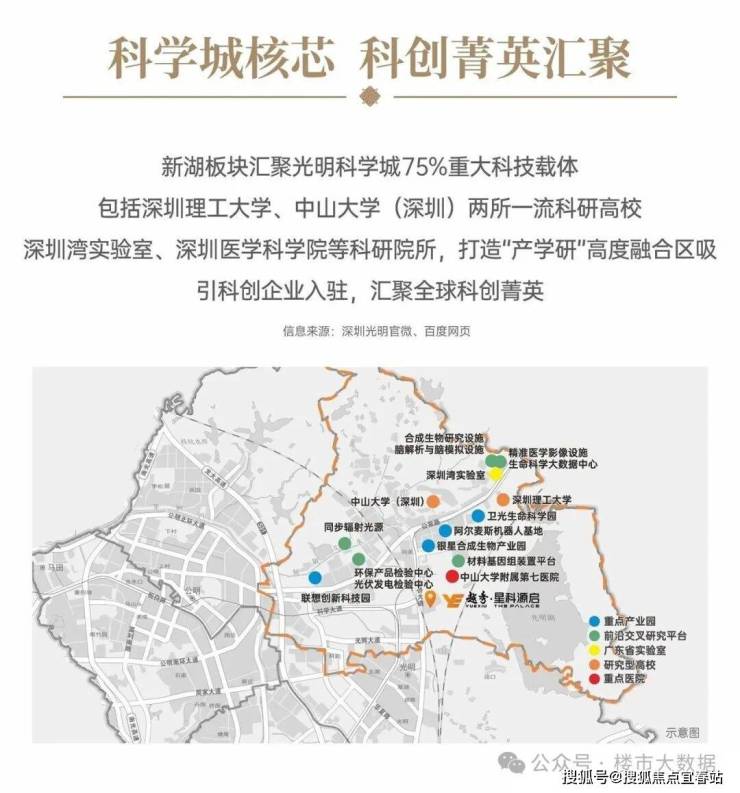 越秀星科源启是越秀地产落子深圳光明的首发之作,选址光明科学城芯光侨路与科学大道交汇处,前身为光晟工业园城市更新单元,以国企匠心构筑宜居型轻改善人居范本。项目于 2025 年 9 月取得预售许可证,10 月开放实体样板间,分三期开发建设,预计 2028 年上半年精装交付。
