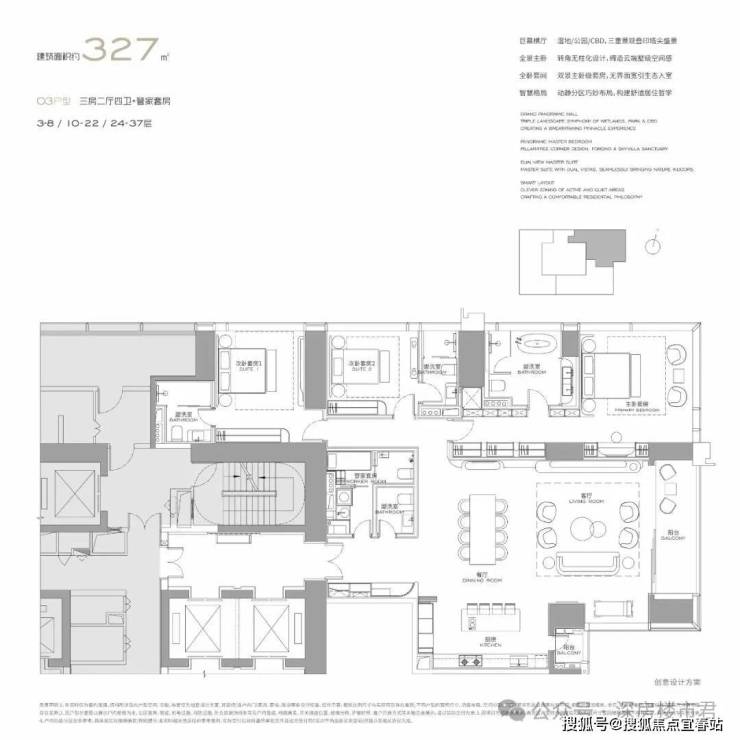 【327平03户型 三房二厅四卫+管家套房】