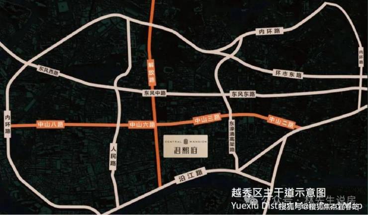 君熙府与地铁 1/2 号线换乘站公园前站相距仅约 400 米,近邻解放路与中山路两大主干道,可快速衔接东风路、内环路等城市动脉,轻松畅达天河、海珠、荔湾等各区核心地带。