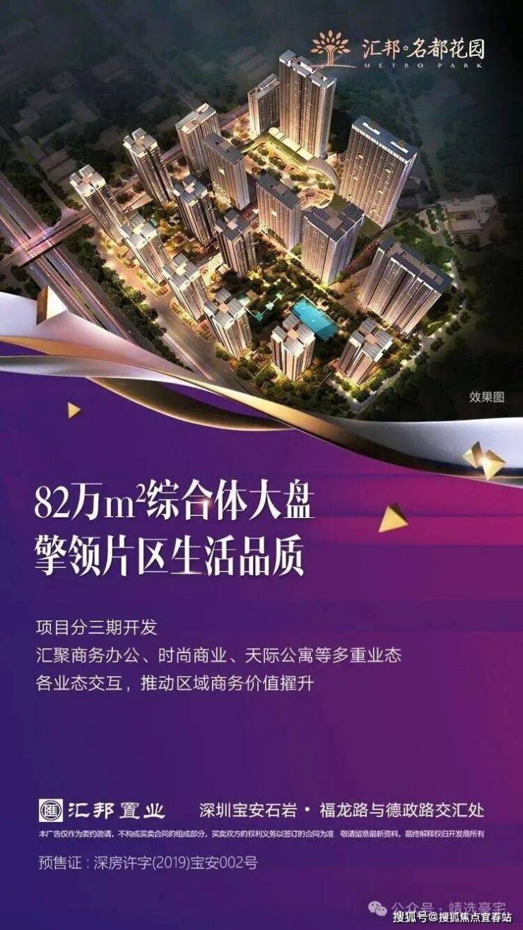 【售楼地址】:深圳宝安石岩福龙路与德政路交汇处(龙大高速水朗出口旁~导航汇邦名都花园)