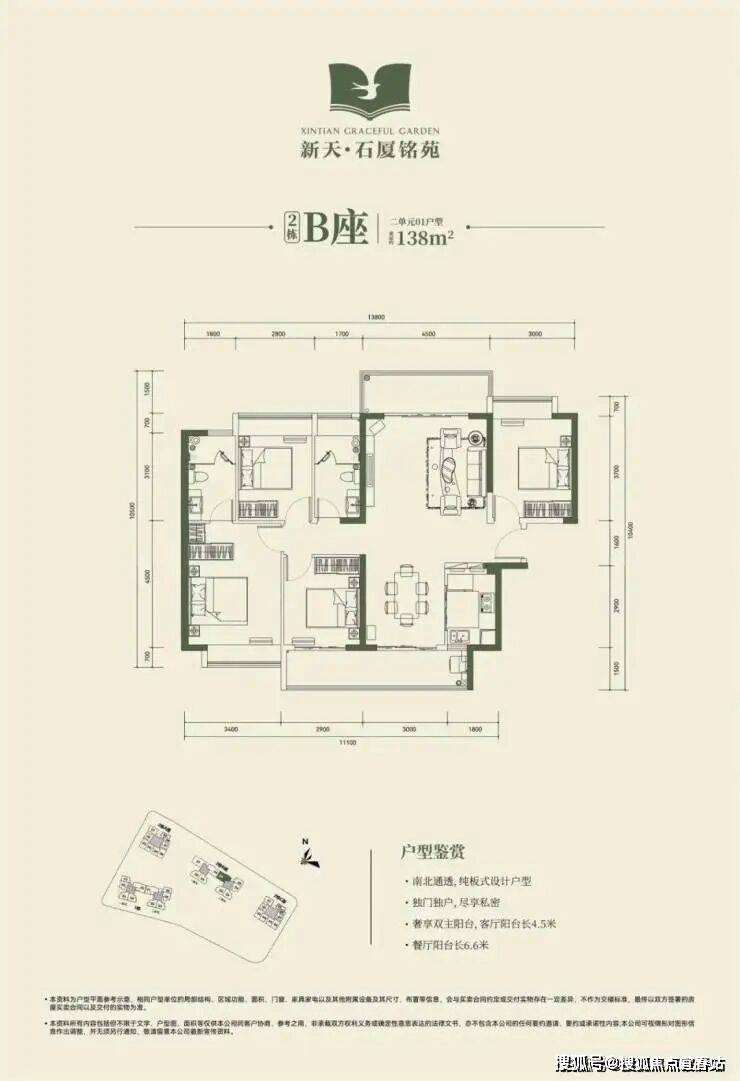 2栋B座一单元01、04户型、2栋B座二单元01户型:面积约为137-138㎡的4房2厅2卫