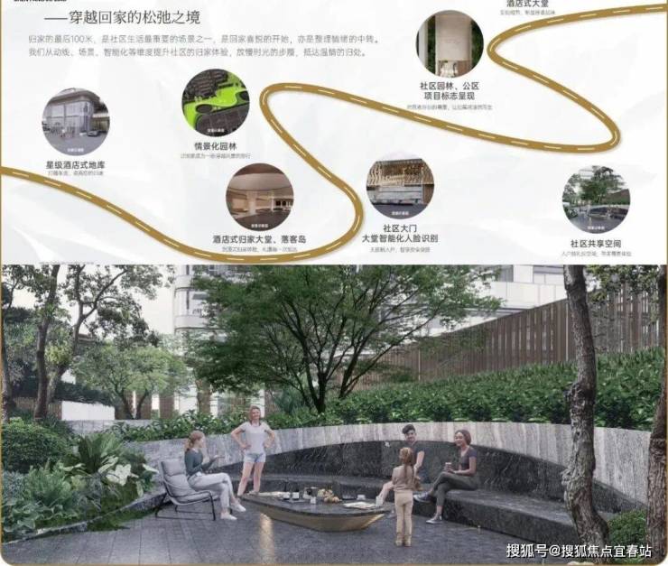 『湾啟紫荆府』项目外围地面层为开放式公共活动空间,花园为屋顶情景化立体园林,三座住宅由风雨连廊衔接,连廊与丝路长廊(城市绿廊公园)无缝链接,另外还有很多凸显逼格的场景,如酒店式归家大堂/落客区/地库、智能无接触式人脸识别门禁、全龄乐享活动空间等。