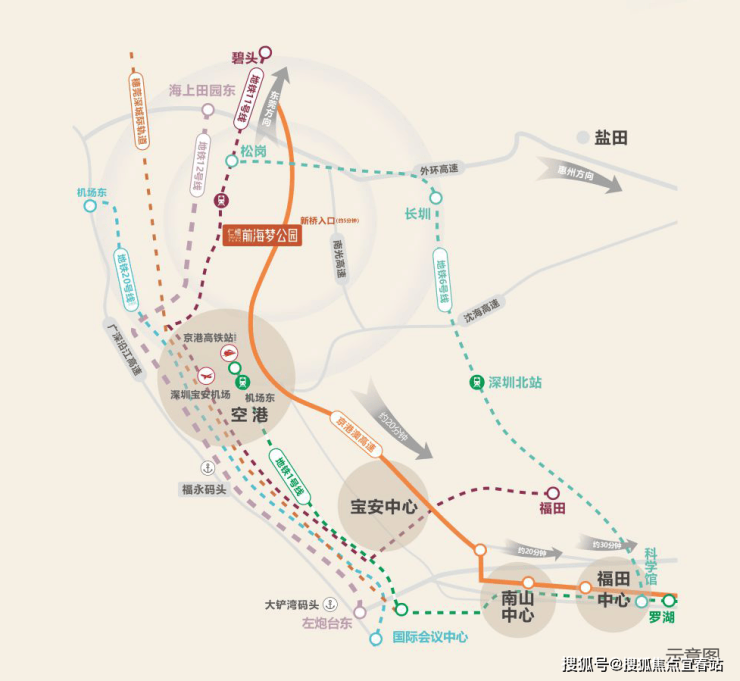 广深沿江高速:粤港澳东岸的快速主干通道,沿海向南通往妈湾、前湾、桂湾等前海核心区,亦可向北直通广州