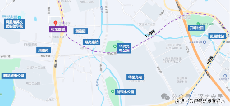 目前距离在建的13号地铁线“月亮路站”约400米,3站到光明城站,5站到石岩上屋站,计划在2025年通车运营。