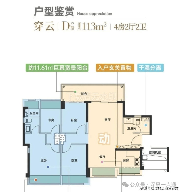 不负地段,振业集团把最新标准化设计理念融入了这个项目,通过蝴蝶造型的楼栋设计,让近80%可售户型可享受一线无遮挡的景观视野。项目总体定位以改善为主,113-141㎡4房为主力户型,低密纯粹。