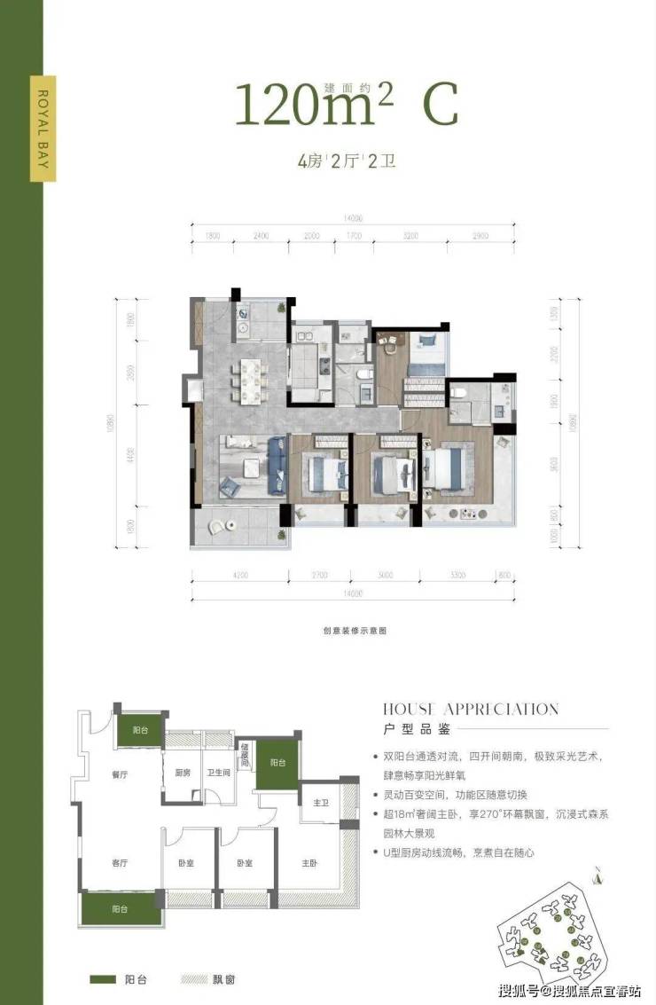 户型亮点:超16米面宽内园林景观,约 7.2 米宽境阳台
