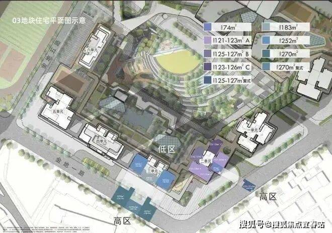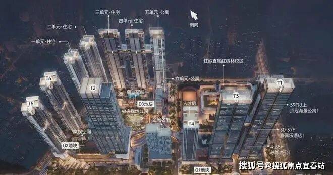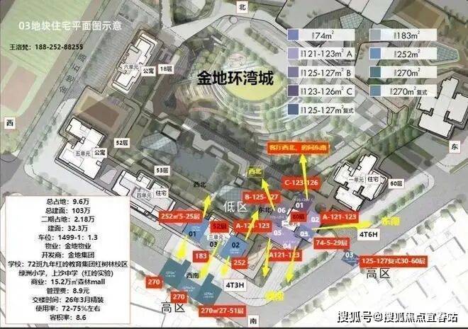 共分4个地块,01地块为T1栋260米高的写字楼,有高端酒店、金地总部等39层以上是450平以上的公寓。T3栋为商务公寓。另外两栋分别是人才房和幼儿园。