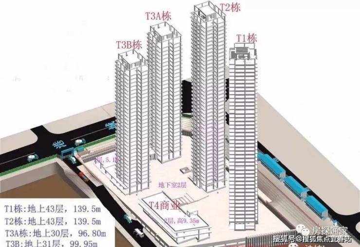 建筑栋数:4栋,其中1栋和2栋43层,3栋1单元30层,3栋2单元31层