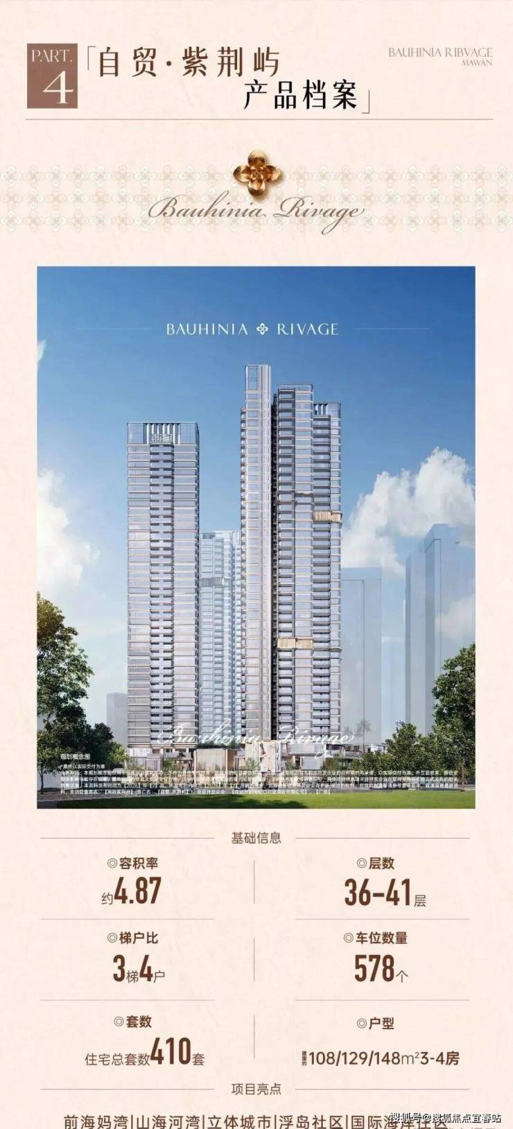 最新动态:前海妈湾的湾啟紫荆府二期「自贸紫荆屿」刚刚取证入市,共408套,户型为108-129-151㎡3-4房,备案均价10.73万带精装。