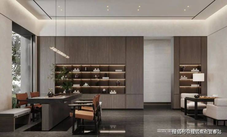 有着约5.5米层高的酒店式归家大堂「云庭」,臻选五星级酒店御用意大利紫山水云纹奢石,目之所及大面积镶嵌,低调又不失奢华。作为融入东方气韵的项目,龙湖星玺·青云阙在售楼部打造上也不遗余力,融入东方元素,细节处尽展大气奢华。